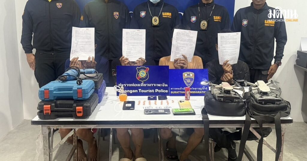 ထိုင်းနိုင်ငံတောင်ပိုင်း၊ စူရတ်ဌာနီခရိုင်၊ ကော့ဖငန်းကျွန်းရှိ နေအိမ်တစ်လုံးတွင် ဖမ်းဆီးခံရသည့် မြန်မာလေးဦးသည် နေအိမ်များကို ဒရုန်းဖြင့် စောင့်ကြည့်ကာ ဖောက်ထွင်းခိုးယူသည်ဟု ရဲတပ်ဖွဲ့က ပြောဆိုထားပြီး မိသားစုဝင်များနှင့် နီးစပ်သူများ၏ ပြောဆိုချက်မှာမူ ယင်းသို့မဟုတ်ဘဲ ကွဲလွဲနေကြောင်း တွေ့ရသည်။