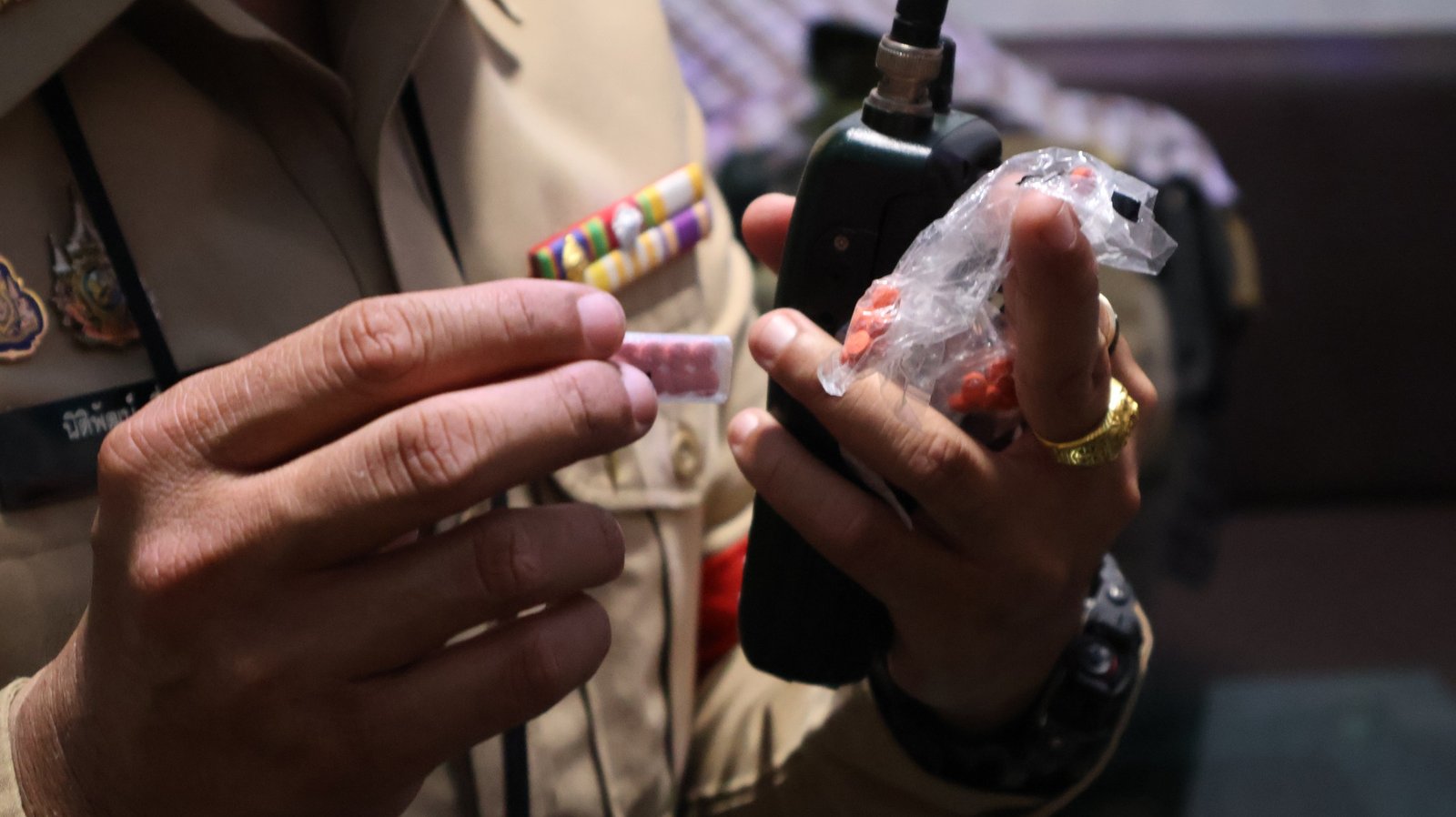 အာဏာပိုင်များ ဝင်စစ်ဆေးစဉ် မူးယစ်ဆေးဝါးနှင့် ကျည်ဆံများ၊ လက်နက်များကိုပါ ဖမ်းမိကြောင်း ဖော်ပြသည်။