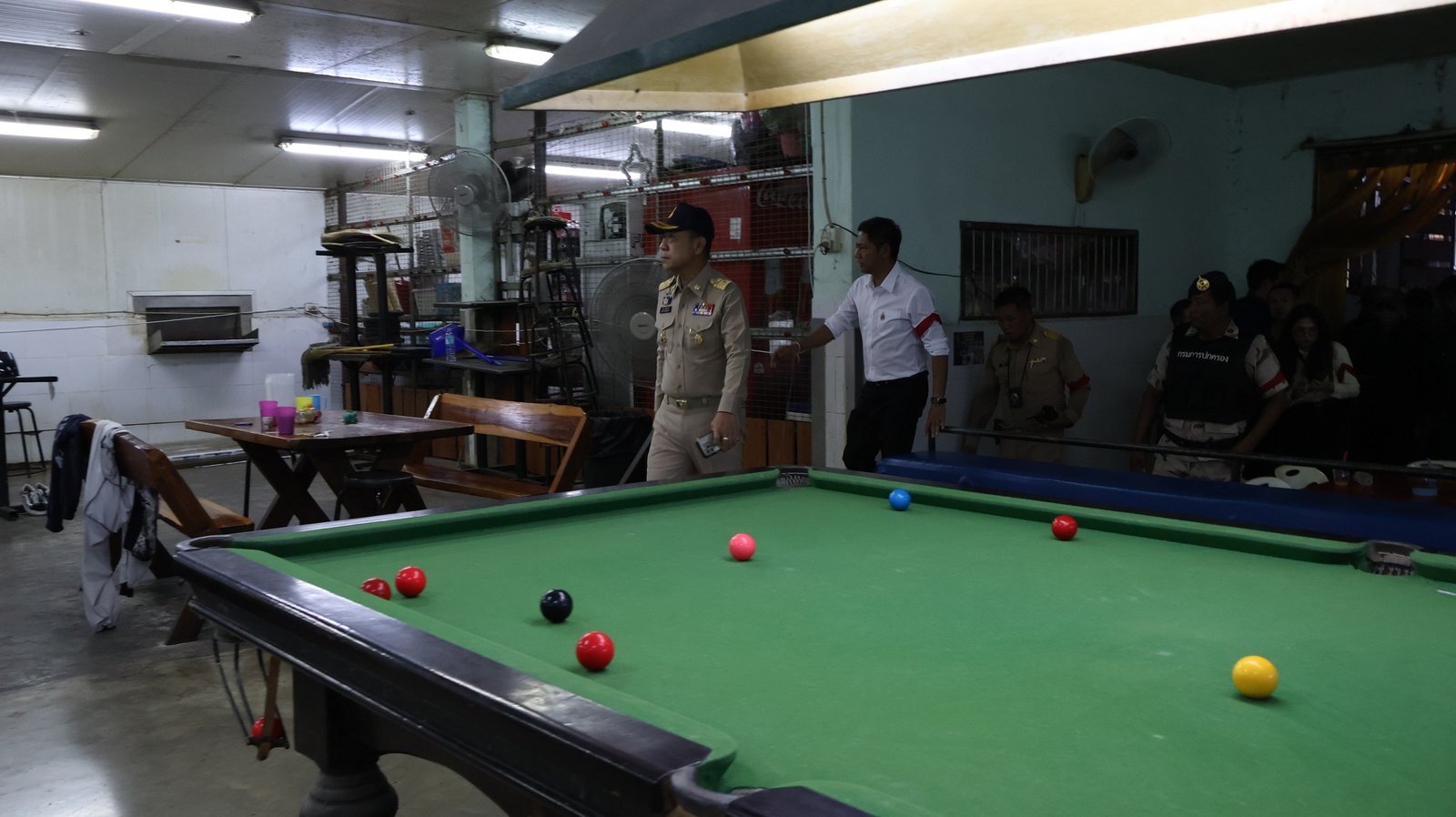 လက်ရှိတွင် ဆိုင်သည် ခွင့်ပြုချက်မရှိပဲ ဖွင့်လှစ်ထားသည်ကို စစ်ဆေးတွေ့ရှိခဲ့ပြီး တရားမဝင် လောင်းကစားလုပ်မှု၊ လက်နက်ပိုင်ဆိုင်မှုများအပြင် ဆက်စပ် ဥပဒေများအရ အရေးယူဆောင်ရွက်သွားမည်ဖြစ်ကြောင်း ဖော်ပြသည်။